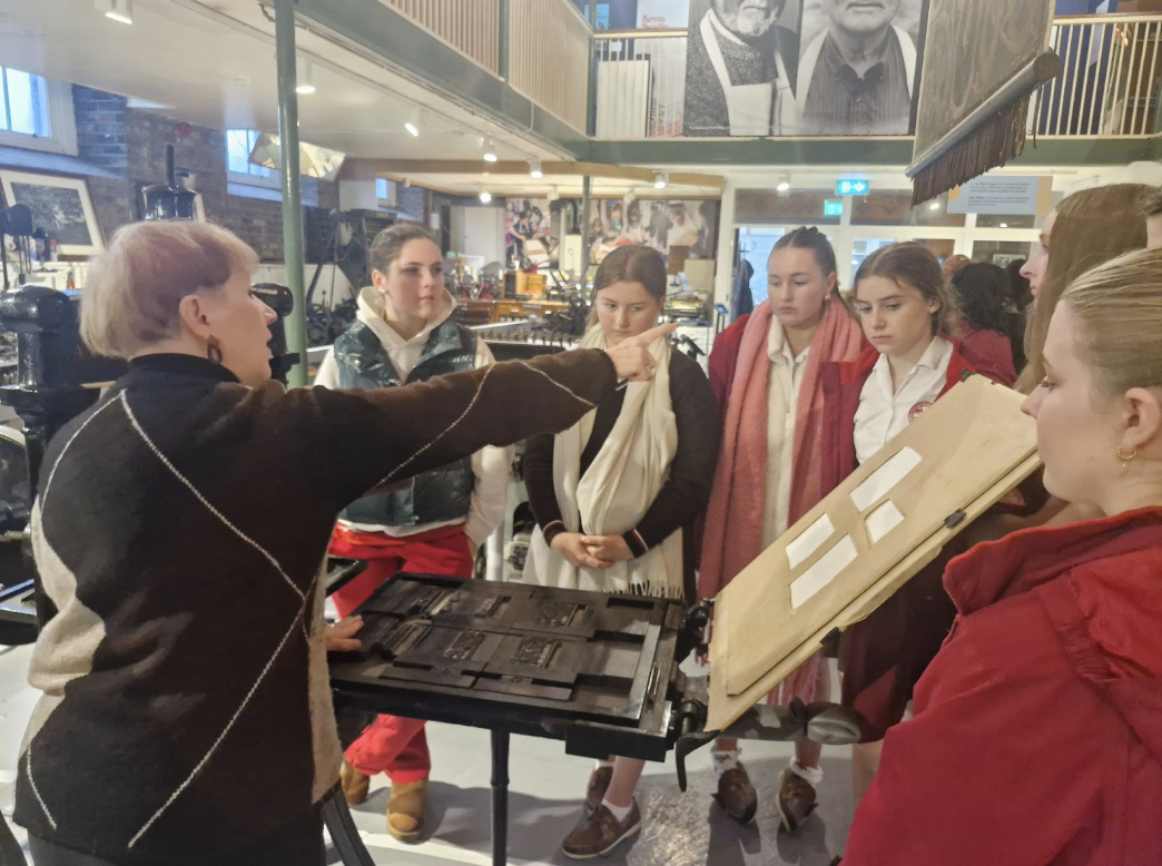 The highlight of the trip was a hands-on workshop where students arranged type and printed their own posters using original printing methods. This practical experience gave them a deeper appreciation of typography, layout, and the skill involved in manual printmaking. It was an engaging and creative day that brought history and art together in a memorable way.