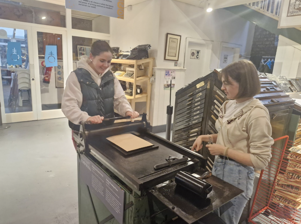 Transition Year Visual Art students recently enjoyed a visit to the National Print Museum. During the tour, students learned about the development of the printing press and its impact on communication, design, and visual culture. They explored traditional techniques, handled historic equipment, and gained insight into the craft of letterpress printing.