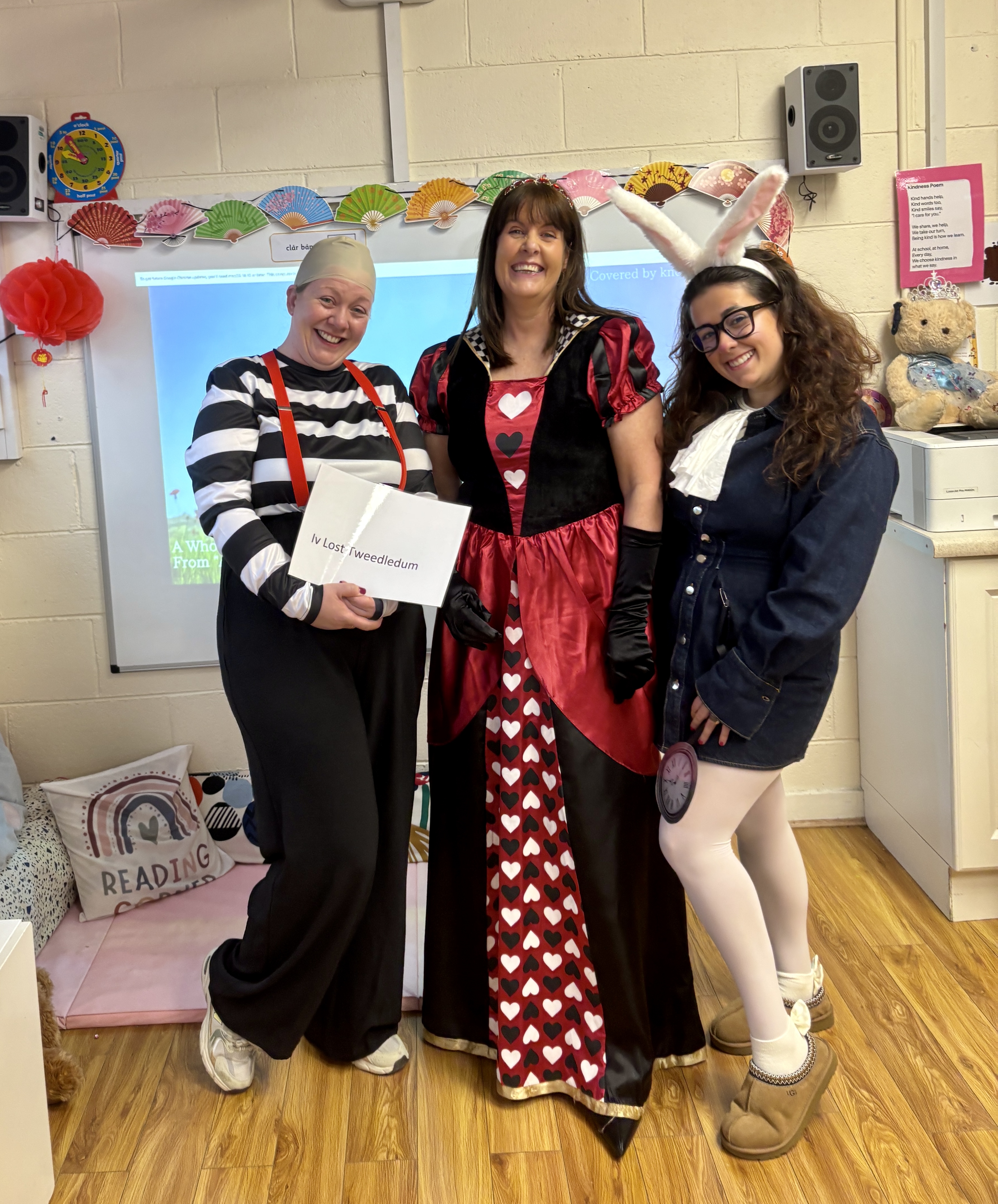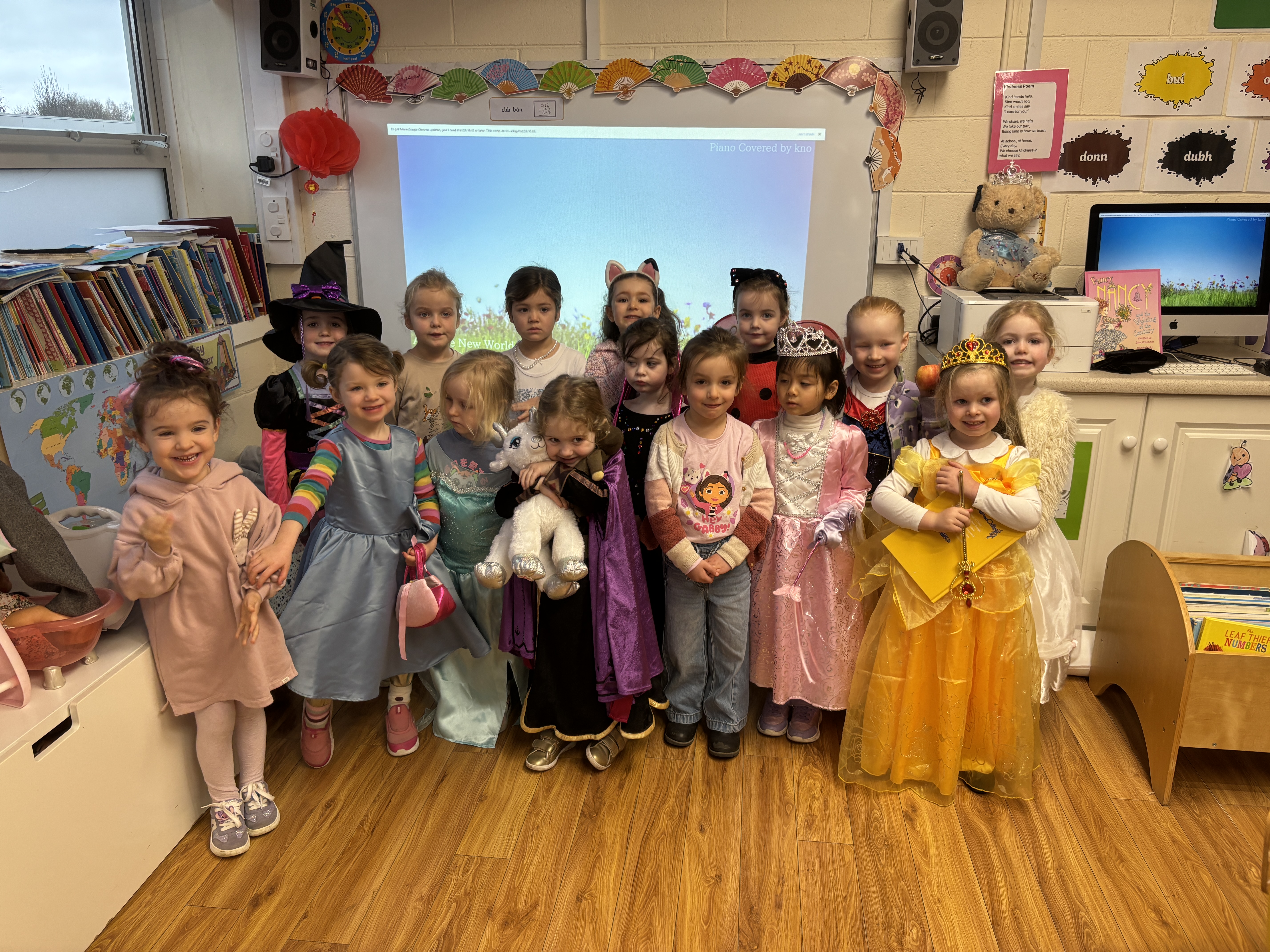 Over the past four weeks in KG Upper, the children have been busy learning through our Spring Aistear theme. In Maths, we practised counting, addition, missing numbers and explored measurement using different classroom objects. In English, we worked on tricky words, adjectives, and writing activities including shopping lists and recipes for our fruit kebabs. In Gaeilge, we practised everyday phrases, counting, songs and prepared a performance for Seachtain na Gaeilge. The girls also learned about healthy foods, the life cycle of a butterfly and planting seeds. Aistear stations included building spring flowers, playdough activities and imaginative farm play. The highlight of our month was definitely World Book Day, when we all dressed up as our favourite book characters, which created great excitement and lots of discussion about books and reading.